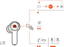 - u kunt driemaal op het aanraakgebied van het linker oordopje tikken om over te schakelen naar de muziekbron op uw mobiele telefoon (zie "Afspeelbediening" voor gedetailleerde muziekaanwijzingen).