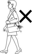 - Wanneer het hoofdapparaat in de tas is geplaatst en de tas onregelmatig beweegt omdat deze uw voet, uw riem of de bovenkant van uw broek raakt.
