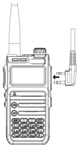 - Schakel de walkie-talkie uit en steek het schroefdraadeinde van de antenne in de antennepoort aan de bovenkant van de hoofdeenheid.