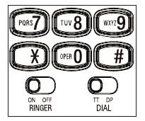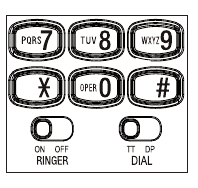 Kies de juiste kiesmodus voordat u deze telefoon gebruikt. Als u een touch-tone kiesservice heeft, schuift u de DIAL (KIEZEN) schakelaar naar TT. Als u een pulse (roterende) service heeft, schuift u de DIAL (KIEZEN) schakelaar naar DP.