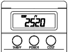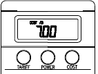 - Herhaal stappen 2. en 3. totdat de gewenste waarden voor de kWh zijn ingesteld. Als een van de cijfers niet hoeft te worden gewijzigd, drukt u gewoon op de "TARIFF" (TARIEF) toets om naar het volgende cijfer te gaan. Zodra alle gewenste waarden zijn geselecteerd, moet de "TARIFF" (TARIEF) toets nogmaals worden ingedrukt om de instelling van alle cijfers te bevestigen (het laatste cijfer aan de linkerkant stopt met knipperen).