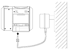 - Steek de adapter in de aansluiting aan de onderkant van de klok.