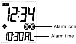 Druk op de AL/HR-toets. Het alarmpictogram ((( ))) verschijnt/verdwijnt, wat aangeeft dat het AAN of UIT is.