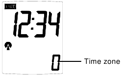 - Gebruik de MODE/MIN-toets opnieuw om de gewenste tijdzone te selecteren. Elke druk verandert de cijfers met 1 uur.