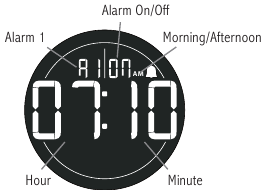 - SET: Werkt met MODE om tijd, wekker en slaaptijd in te stellen