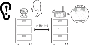 - Plaats de ouderunit op meer dan 1 meter (3 voet) afstand van de babyunit om gierend geluid te voorkomen.