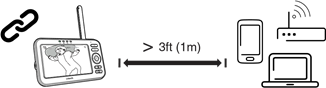 - Om storing van andere elektronische apparaten te voorkomen, plaatst u uw babyfoon op minstens 1 meter (3 voet) afstand van apparaten zoals draadloze routers, magnetrons, mobiele telefoons en computers.
