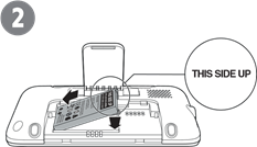 - Zorg ervoor dat het label THIS SIDE UP (DEZE KANT BOVEN) naar boven is gericht tijdens het plaatsen van de batterij.