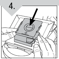 - Duw de nieuwe stoffilter in de filterzakhouder, totdat deze gelijk ligt met de rand van de filterzakhouder.