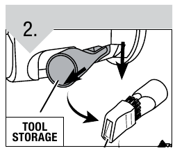 - Om accessoires op het apparaat op te bergen, plaatst u ze eenvoudigweg op de houder op de buis. De kierenzuiger kan aan de achterkant van het apparaat worden opgeborgen, zoals afgebeeld.