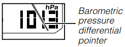Digitale tijdwaarneming: Uur, minuten, seconden, a.m. (A)/ p.m. (P), maand, dag, dag van de week, indicatie van verandering van barometrische druk