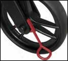 Druk beide remhendels omlaag totdat u een duidelijke klik hoort. Zorg er altijd voor dat beide remmen zijn ingeschakeld. Trek omhoog om de parkeerremmen los te maken. Wanneer u de zitting gebruikt, MOETEN beide remmen voor uw veiligheid in de vergrendelde stand staan.