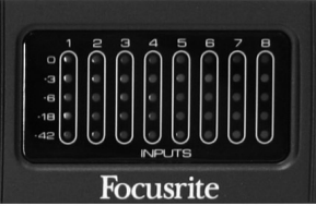 - Afzonderlijke 5 LED-meter voor elk ingangskanaal -42, -18, -6, -3, 0 dBFS. (LET OP: Meting is na voorversterker en compressie)