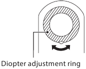 - Kijk door de oculair en draai aan de dioptrie-aanpassingsring totdat het interne scherm scherp is.