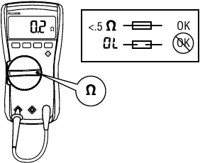 | Continuïteit | 600 Ω | 1 Ω | Beeper aan bij < 20 Ω, uit bij > 250 Ω; detecteert open of kortsluiting van 500 μs of langer. | 115C, 117C | |
