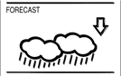 De weerstrendindicatoren (aan de linker- en rechterkant van de weericonen) werken samen met de weericonen. Wanneer de indicator naar boven wijst, betekent dit dat de luchtdruk toeneemt en het weer naar verwachting zal verbeteren, maar wanneer de indicator naar beneden wijst, daalt de luchtdruk en wordt verwacht dat het weer slechter wordt.