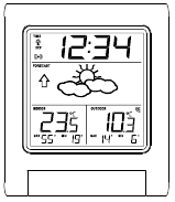 - Zodra de externe temperatuur is ontvangen en weergegeven op het weerstation, wordt de DCF-tijd (radiogestuurde tijd) code-ontvangst automatisch gestart. Dit duurt doorgaans tussen de 3-5 minuten onder goede omstandigheden.