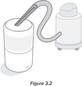 - Maak resterend stof of haar in de luchtreiniger schoon met een stofzuigerslang. Gebruik geen water of vloeistoffen om de luchtreiniger schoon te maken. [Figuur 3.2]