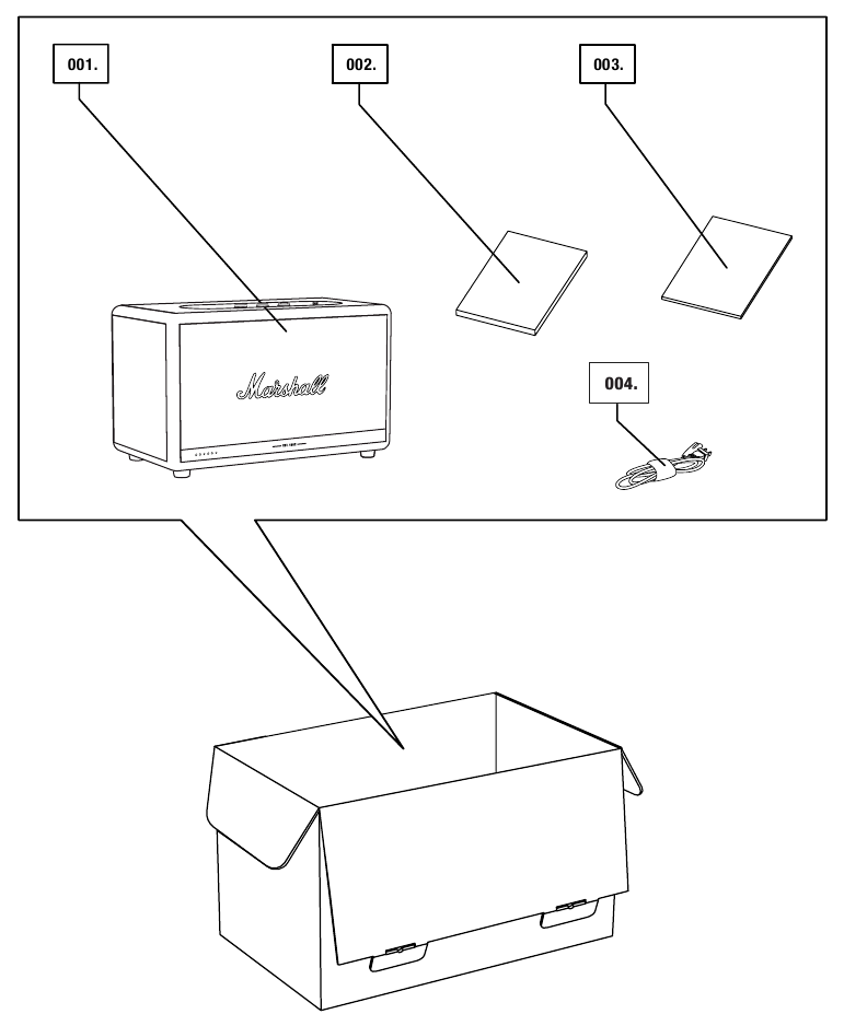 - Het ontwerp van het apparaat en de verpakking zijn intellectuele eigendommen van Zound Industries International AB en Marshall Amplification Plc. © Alle rechten voorbehouden. Zound Industries International AB wordt hierna aangeduid als "Zound Industries" of "fabrikant".