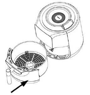 - Reinig de mand, het mandrooster, het beschermrooster van het verwarmingselement en de olietank grondig met warm water, afwasmiddel en een niet-schurende spons.