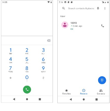 Elk gebeld en ontvangen telefoonnummer wordt opgeslagen in het oproeplogboek van de telefoon. Alle recent gebelde nummers in het oproeplogboek kunnen worden gebeld door op de contacttegel in het tabblad snelkiezen te klikken, of door op het contact te klikken en terugbellen te selecteren in het tabblad Recente. Wanneer het nummer in de lijst verschijnt, klik je erop om de details te bekijken. Om een oproep uit de oproepgeschiedenis te verwijderen, druk je op de menutoets en selecteer je verwijderen. Je kunt een of meerdere oproepen verwijderen.