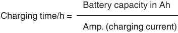 De oplaadtijd is afhankelijk van de laadtoestand van de accu. Als de accu volledig is ontladen, kan de geschatte oplaadtijd tot ca. 80% opgeladen worden berekend met behulp van de volgende formule: