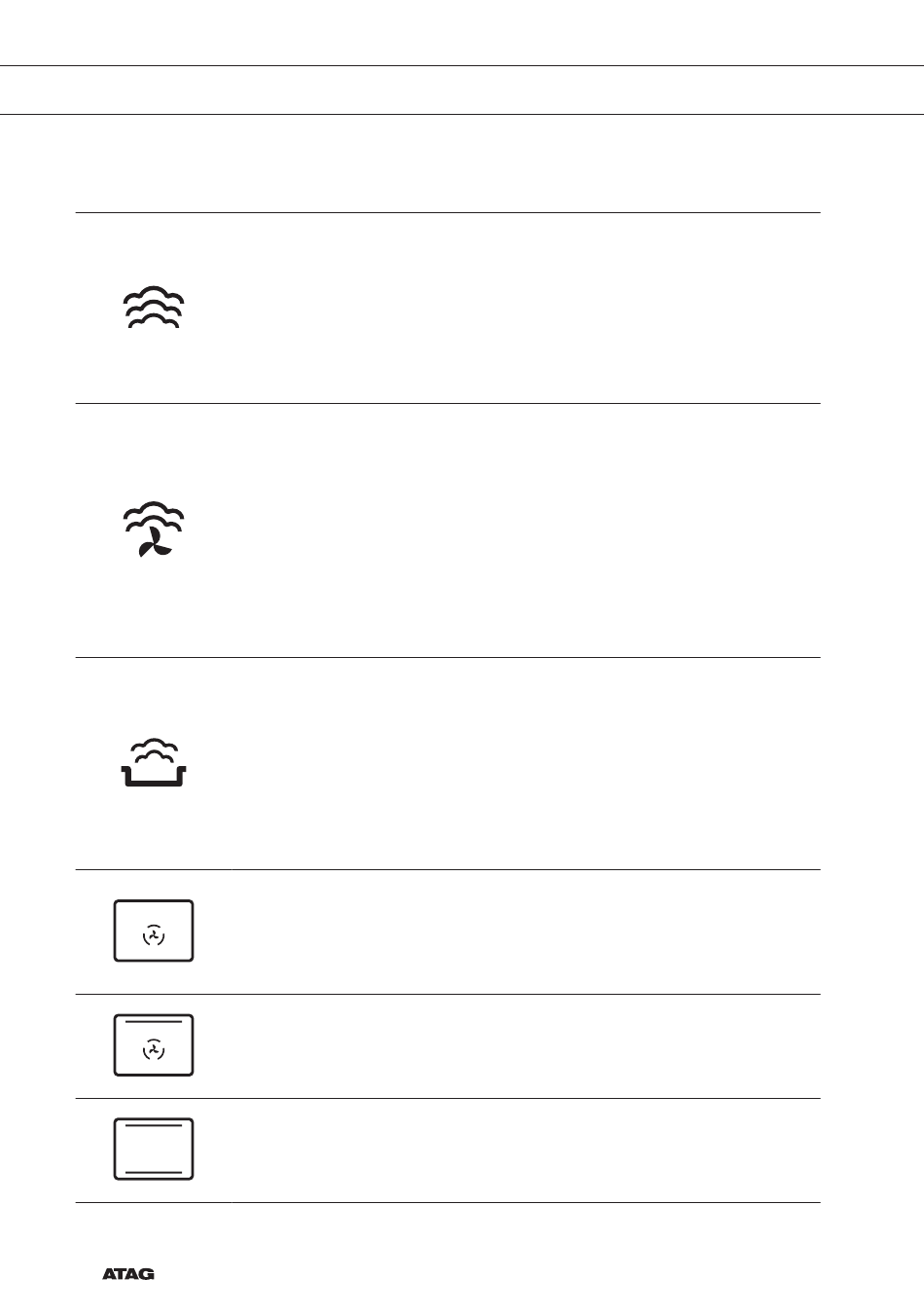 In de volgende tabel ziet u de verschillende standen en instellingen van uw oven.