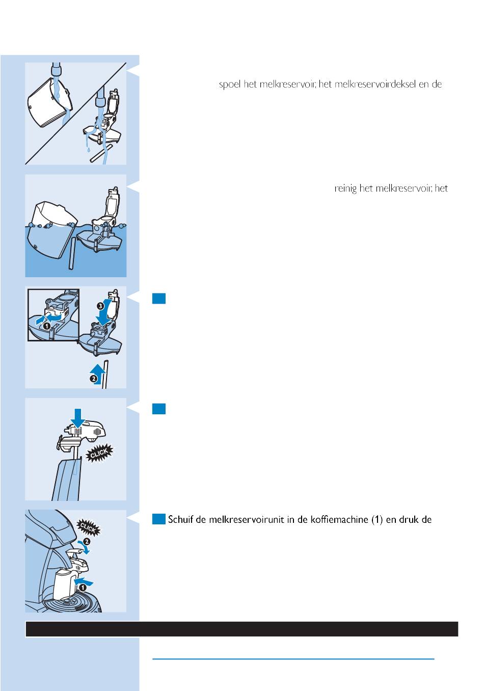 wanneer de melkreservoirunit heel vuil is. V oordat u de melkreservoirunit in