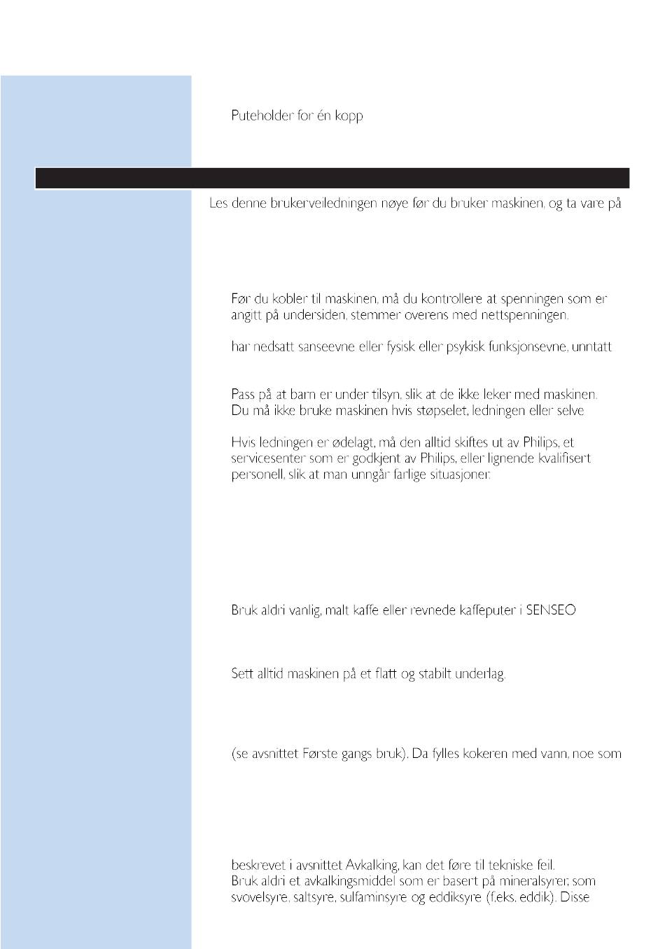 Philips anbefaler på det sterkeste at du avkalker denne S ENSEO