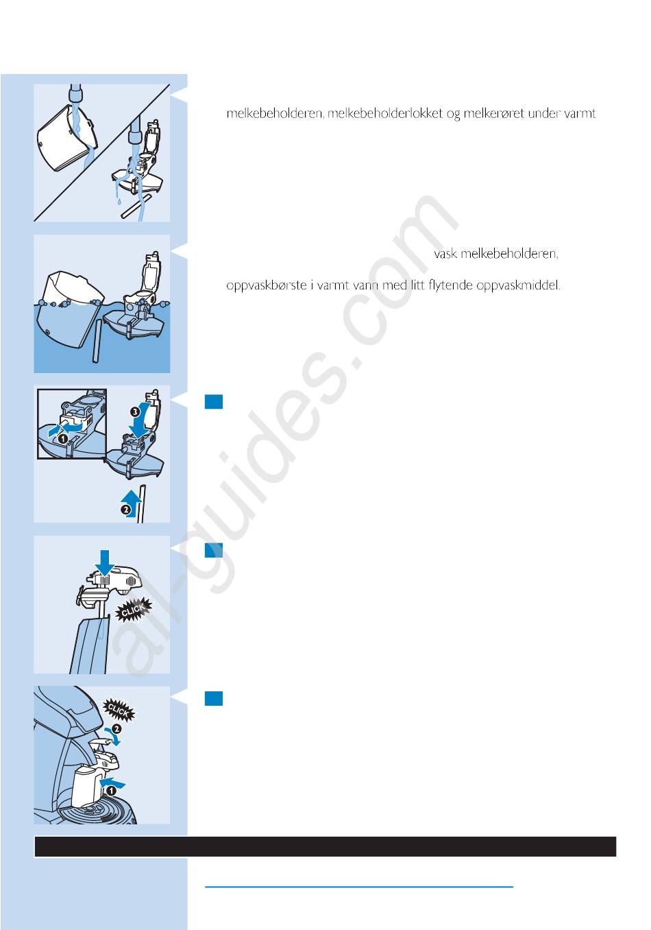 melkebeholderlokket og melkerøret i oppvaskmaskinen eller med en