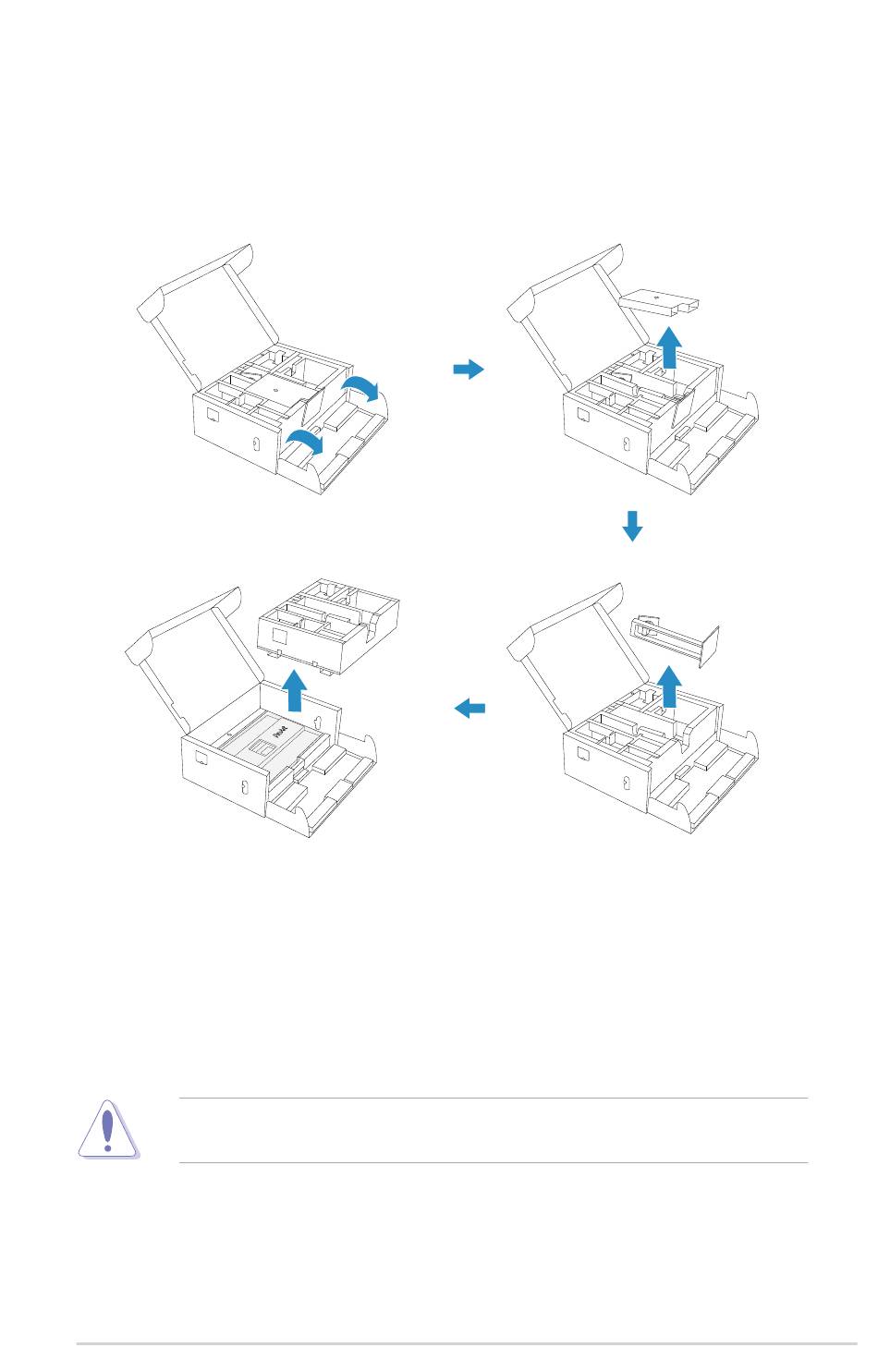 Na het openen van de doos verwijdert u de papieren kussens en standaard