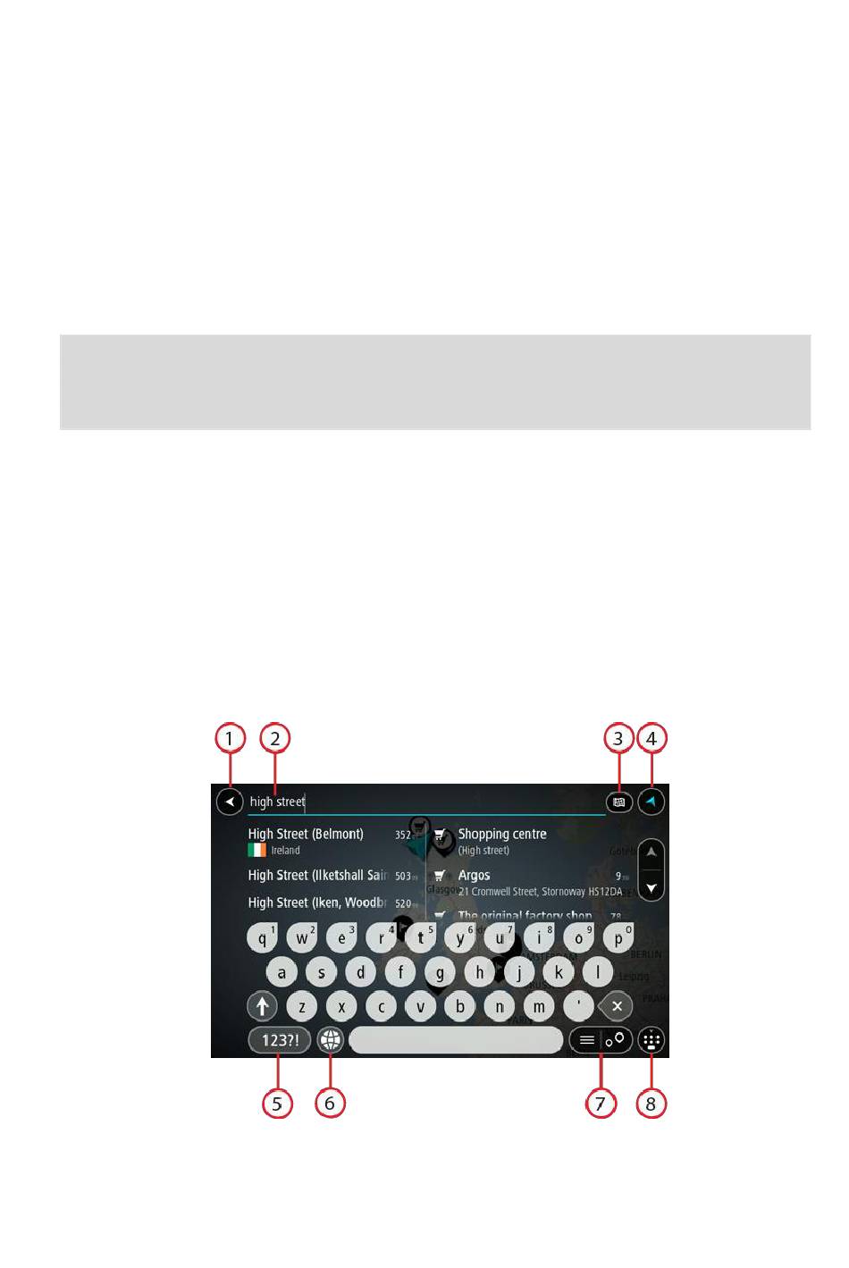 Selecteer Zoek in het hoofdmenu als je wilt beginnen met zoeken naar adressen en POI's. Het