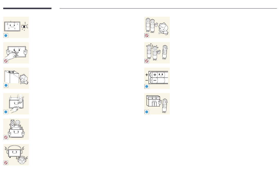 • Anders kan de batterij beschadigd raken of brand, persoonlijk letsel of