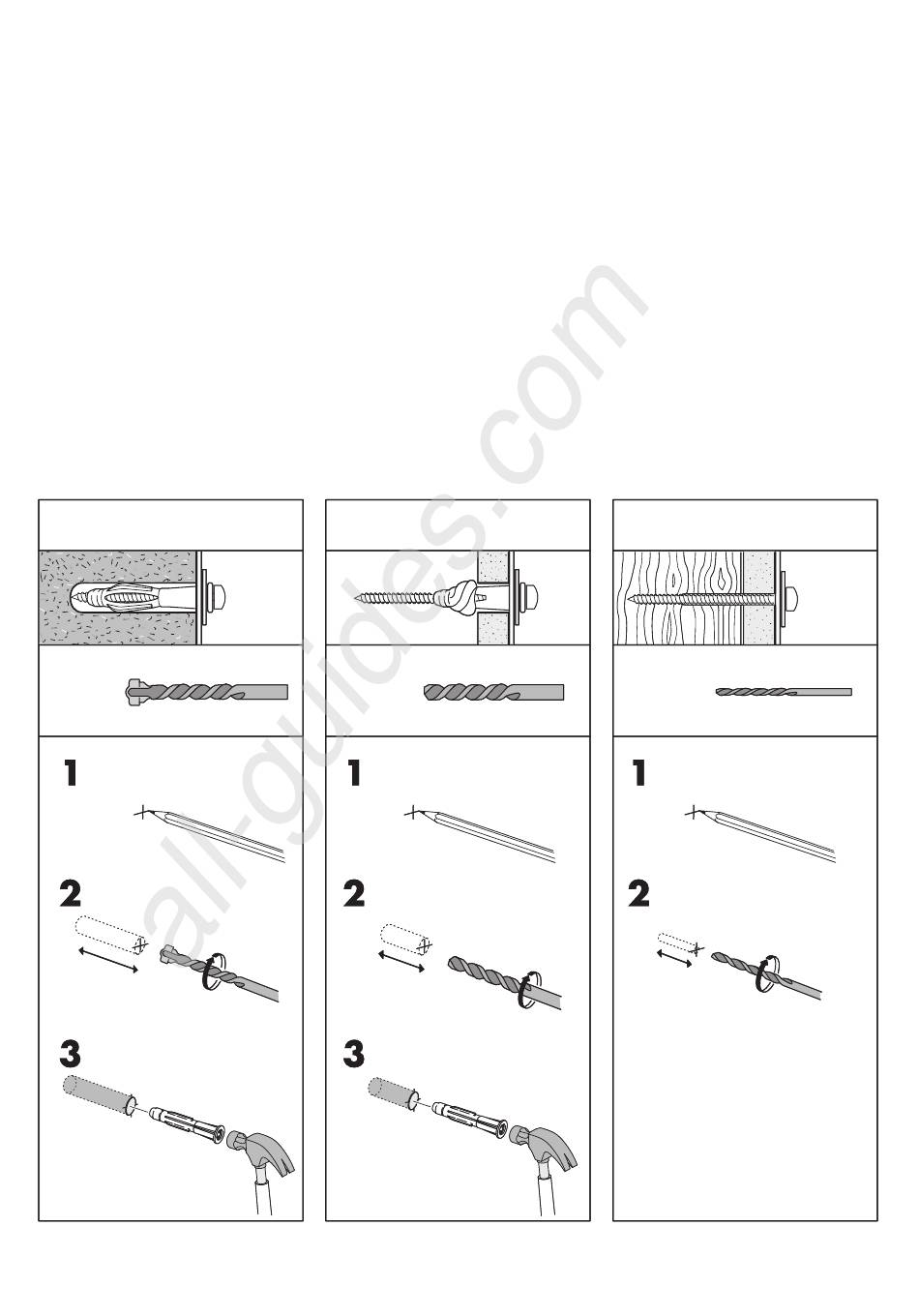 제공된 나사와 플러그는 대부분의 단단한 벽(A)이나