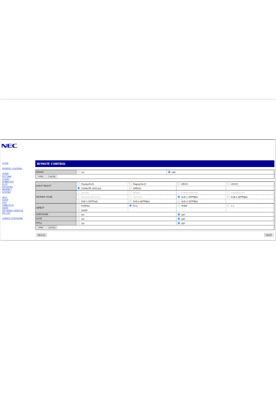 [ RELOAD] (Opnieuw laden): Hiermee kunt u de instellingen opnieuw laden.