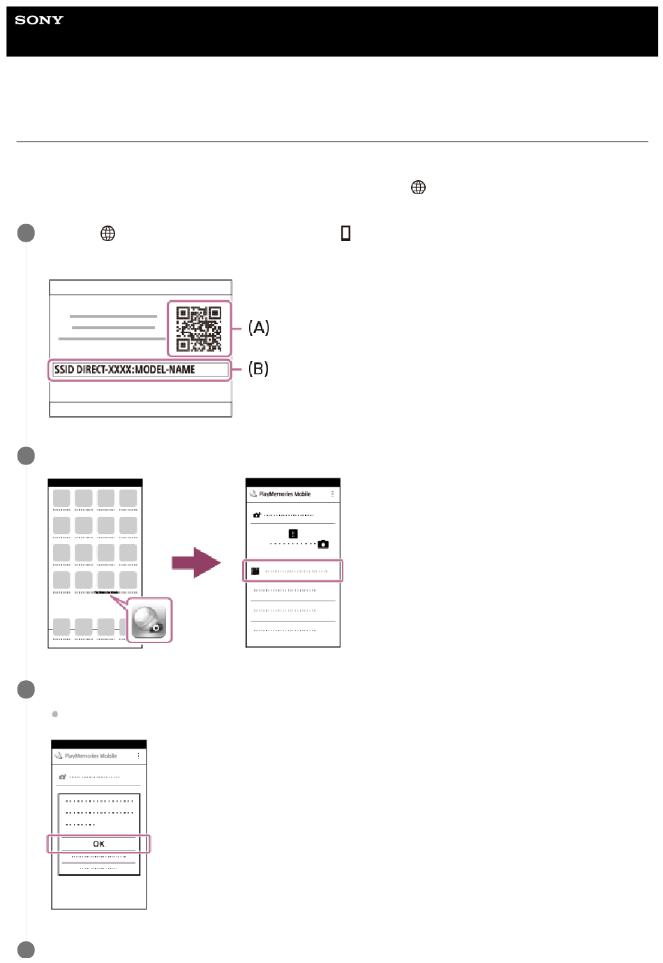 Open PlayMemories Mobile op uw iPhone of iPad en selecteer [QR Code van de camera scannen].