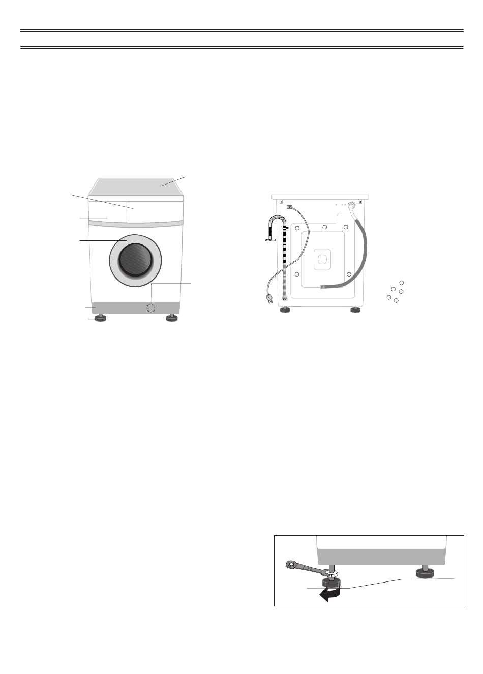 Als de vloer niet waterpas is, kunt u de stelpoten aanpassen (leg geen blokjes hout of andere voorwerpen