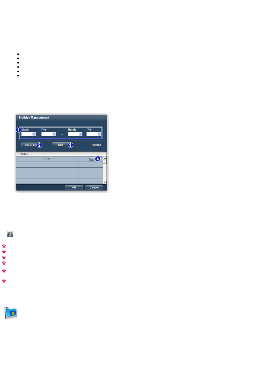 - Hiermee wordt de functie Holiday Management op de Timertoegepast.